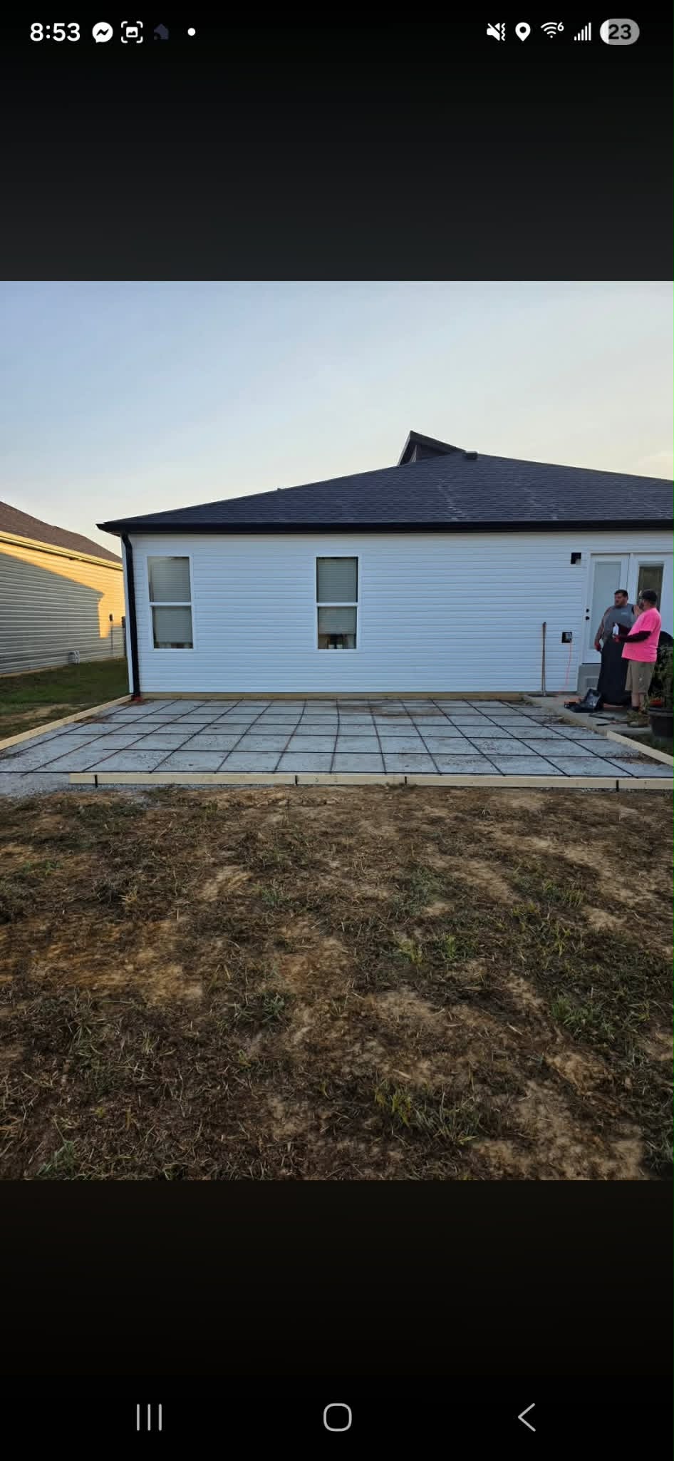Existing small patio doubled in size with a 20'Γ25' concrete extension. Full sub-base prep, rebar grid for reinforcement, and a broom finish for slip resistance. Seamless connection to the existing slab.